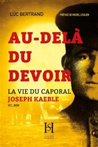 Les Éditions Sylvain Harvey annoncent la parution du 26e livre de l’auteur prolifique Luc Bertrand, intitulé : Au-delà du devoir – La vie du caporal Joseph Kaeble, VC, MM. Cet essai historique captivant, qui se lit comme un roman, nous entraîne au cœur de la guerre 1914-1918. On y découvre le parcours et l’exploit héroïque d’un jeune soldat québécois qui lui a valu les plus grands honneurs.