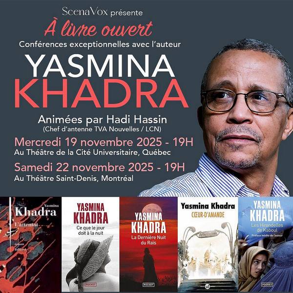 L’écrivain Yasmina Khadra, sera en visite au Québec dans le cadre du Salon du livre de Montréal du 19 au 23 novembre 2025 au Palais des congrès de Montréal.