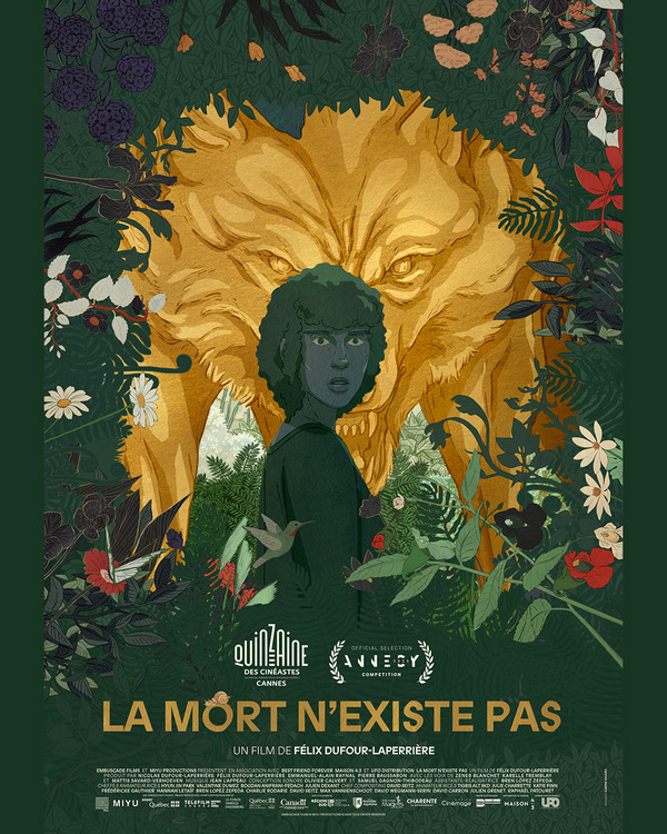 Produit par Nicolas Dufour-Laperrière et Félix Dufour-Laperrière pour Embuscade Films (Archipel) et en France par Emmanuel-Alain Raynal et Pierre Baussaron pour Miyu Productions (Saules aveugles femmes endormies), La mort n’existe pas fait entendre les voix de Zeneb Blanchet, Karelle Tremblay et Mattis Savard-Verhoeven.