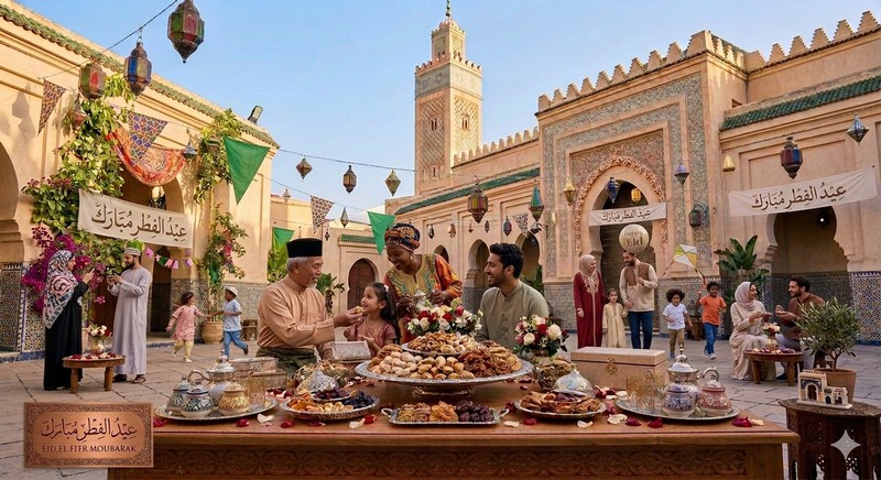 Les musulmans fêtent cette année l’Aïd el-fitr appelé aussi l’Aïd es-seghir, le 19 ou le 20 mars 2026. C’est la grande fête du pardon, qui vient couronner la fin du ramadan. Elle a lieu le premier jour de Chawal, 10e mois du calendrier musulman, lunaire de cycle.