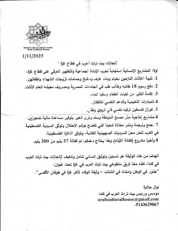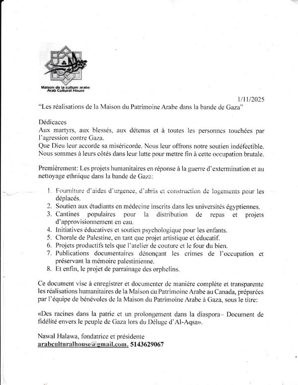 Les réalisations de la Maison du Patrimoine Arabe dans la bande de Gaza