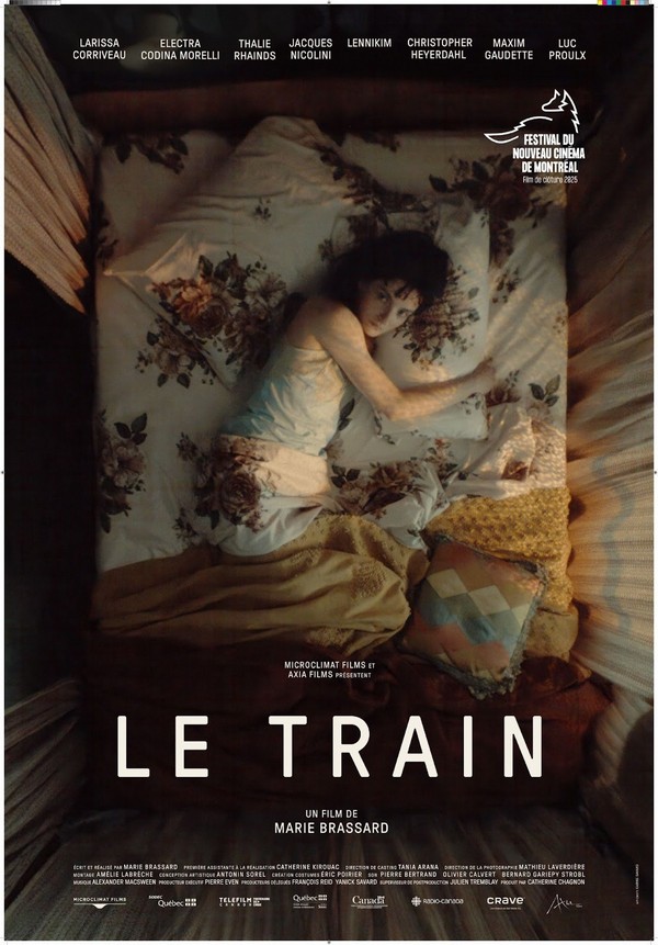 Axia Films et Microclimat Films sont heureuses dannoncer que le film LE TRAIN de Marie Brassard prendra laffiche le 24 octobre prochain, après avoir été présenté en clôture de la 54e édition du Festival du Nouveau Cinéma le 18 octobre. Mettant en vedette Larissa Corriveau, Thalie Rhainds, Jacques Nicolini, Electra Codina Morelli, Lennikim, Christopher Heyerdahl, Luc Proulx et Maxim Gaudette.