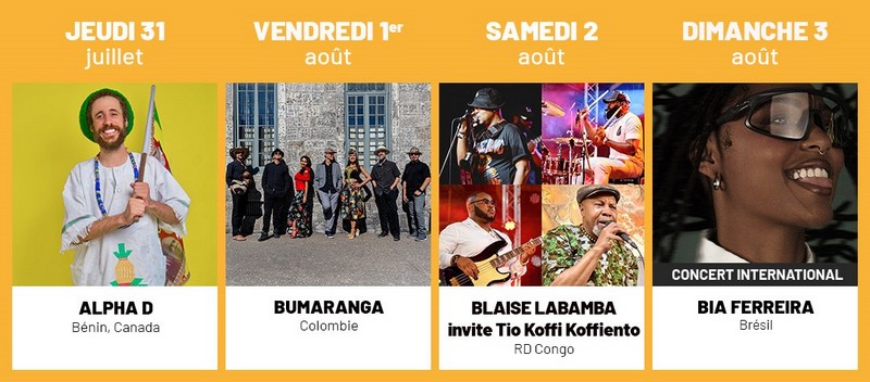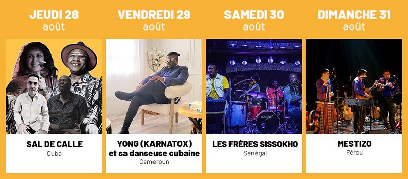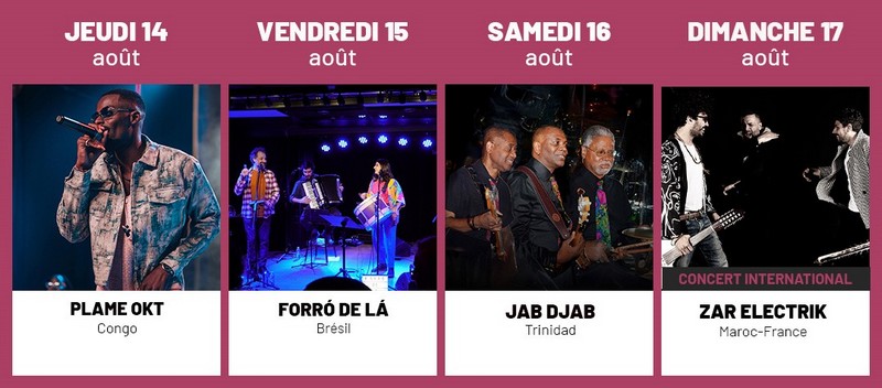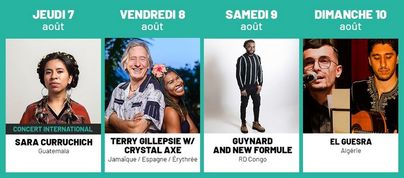 Ce mois d’août sera également rythmé par trois concerts internationaux exceptionnels qui nous emmènerons aux confins du Brésil, du Guatemala et du Maroc :