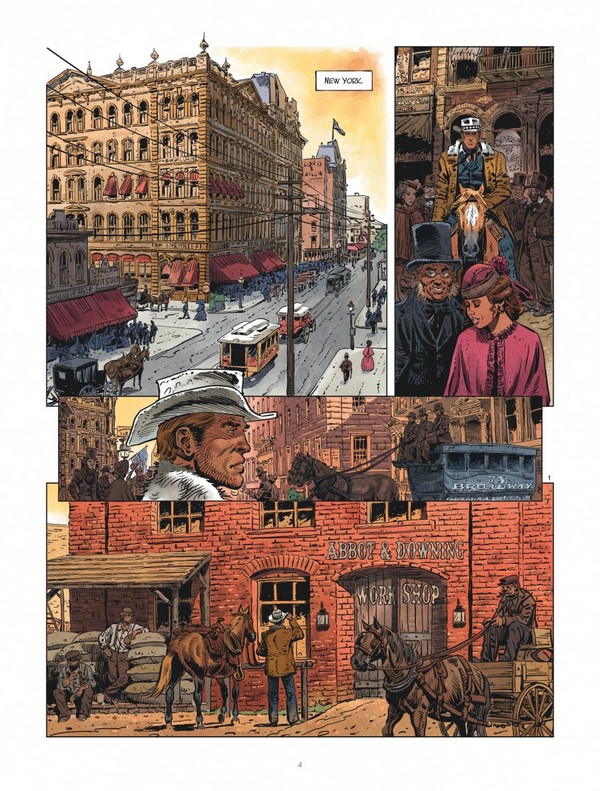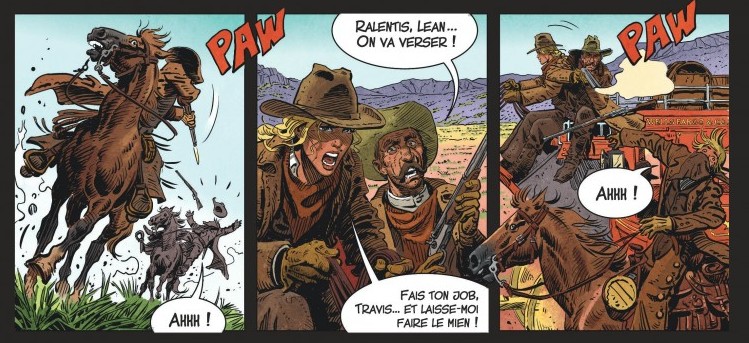 Au niveau graphique, c’est Roman Surzhenko qui se charge de nous embarquer dans l’Ouest Américain à travers ses dessins plus vrais que nature. Le dessinateur russe n’est pas un novice du western, puisqu’il y a déjà repris la série dérivée Durango la jeunesse. Autant dire qu’il maîtrise les codes du genre à travers la recherche graphique qui permet de donner vie à ces cowboys chevauchant leurs montures qui nous donnent l’impression de vivre le Far West comme si on y était. Rappelons d’ailleurs que Surzhenko a travaillé pendant plusieurs années sur La jeunesse de Thorgal et plus récemment dans Thorgal Saga (Shaïgan).
