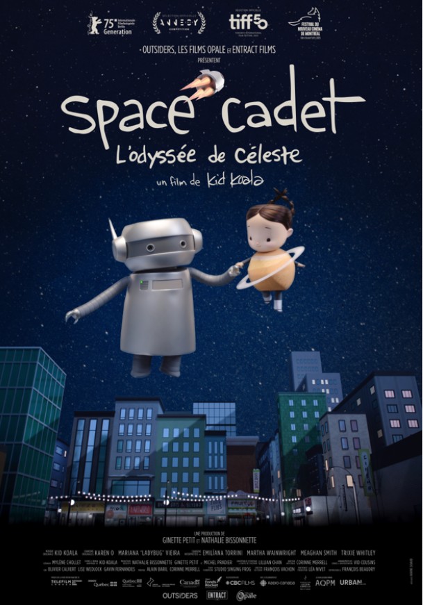 SPACE CADET, L’ODYSSÉE DE CÉLESTE, réalisé par l’artiste multidisciplinaire Kid Koala, prendra l’affiche partout au Québec le 20 février prochain, pour la relâche scolaire. Distribué par Les Films Opale et Entract Films et produit par Les Films OUTSIDERS, ce long-métrage d’animation est une fable musicale vibrante sur la mémoire, le temps qui passe et notre lien avec l’infini.