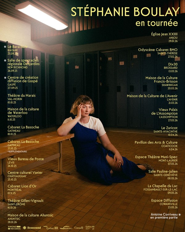Entourée de ses ami•es précieux (Charles Blondeau à la batterie, Camille Gélinas aux claviers, Alexandre Martel à la basse et Bianca Bernier à la sonorisation) Stéphanie Boulay s’illumine à tourner son deuxième album solo, Est-ce que quelqu’un me voit?, depuis avril dernier.